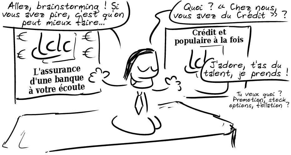 L’on pourrait croire que le concept d’image de marque est une invention de connards destinée à drainer l’argent des entreprises vers des agences de com aux méthodes aussi chaotiques que celles d’un souffleur de verre atteint de hoquet. Et c’est en effet le cas. Il n’empêche que le fait est avéré : si votre entreprise jouit d’une bonne réputation, tous les narratifs qu’elle va proposer seront acceptés et donc rentables. Car on ne vend pas un produit ou un service : on vend un narratif. Cette assertion est parfaitement illustrée par le cas des banques.
