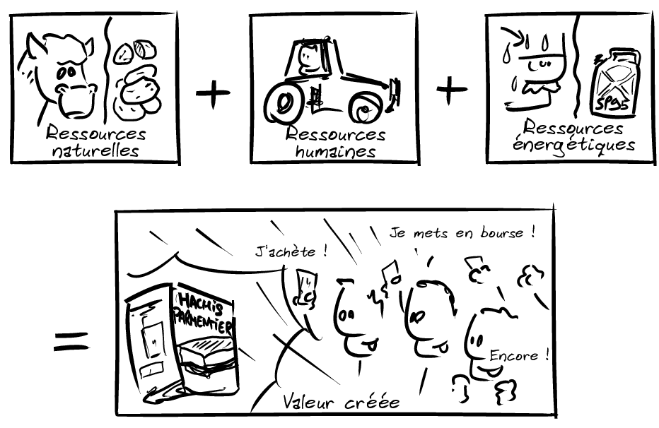 Pour comprendre comment les institutions financières ont réussi ce tour de force, il faut revenir à la source : l’argent. Il a fallu un connard pétri de bonnes intentions pour créer cette convention permettant d’échanger les valeurs créées par chacun d’entre nous. Car l’argent n’est qu’un symbole, une idée matérialisée par des coquillages, des bouts de métaux ou de papiers, pour représenter de la valeur. Et la valeur nait de notre exploitation des ressources naturelles, humaines et énergétiques.